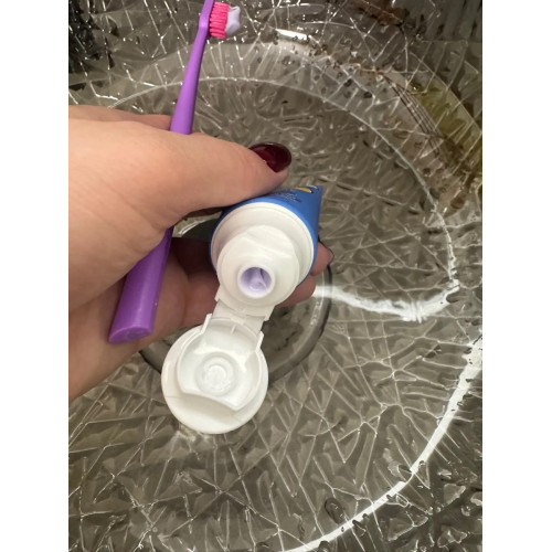 Классный дизайн, удобная крышка. Вкусный аромат и ребенок не отказывается чистить зубки. Пенится хорошо. Зубная щетка этой же фирмы и удобно держать в руке, щетина средней жёсткости. Также рекомендую товар в комплексе