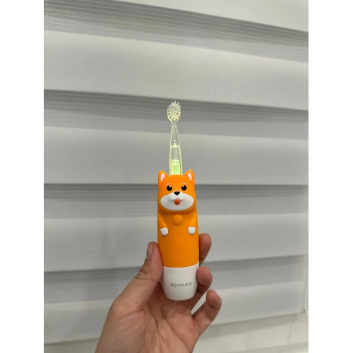 Щетка выглядит симпатично, удобно лежит в руке. Однако цвет отличается от фото на коробке, вживую оранжевый светлее. При первом нажатии включается подсветка, при повторном добавляется жужжание на трёх разных скоростях. Ребёнку год, не испугался, но пока чистить не согласился. Но тут нужно время привыкнуть, рассмотреть хорошенько) Будем надеяться, что щётка поможет решить проблему бунта при чистке зубов…